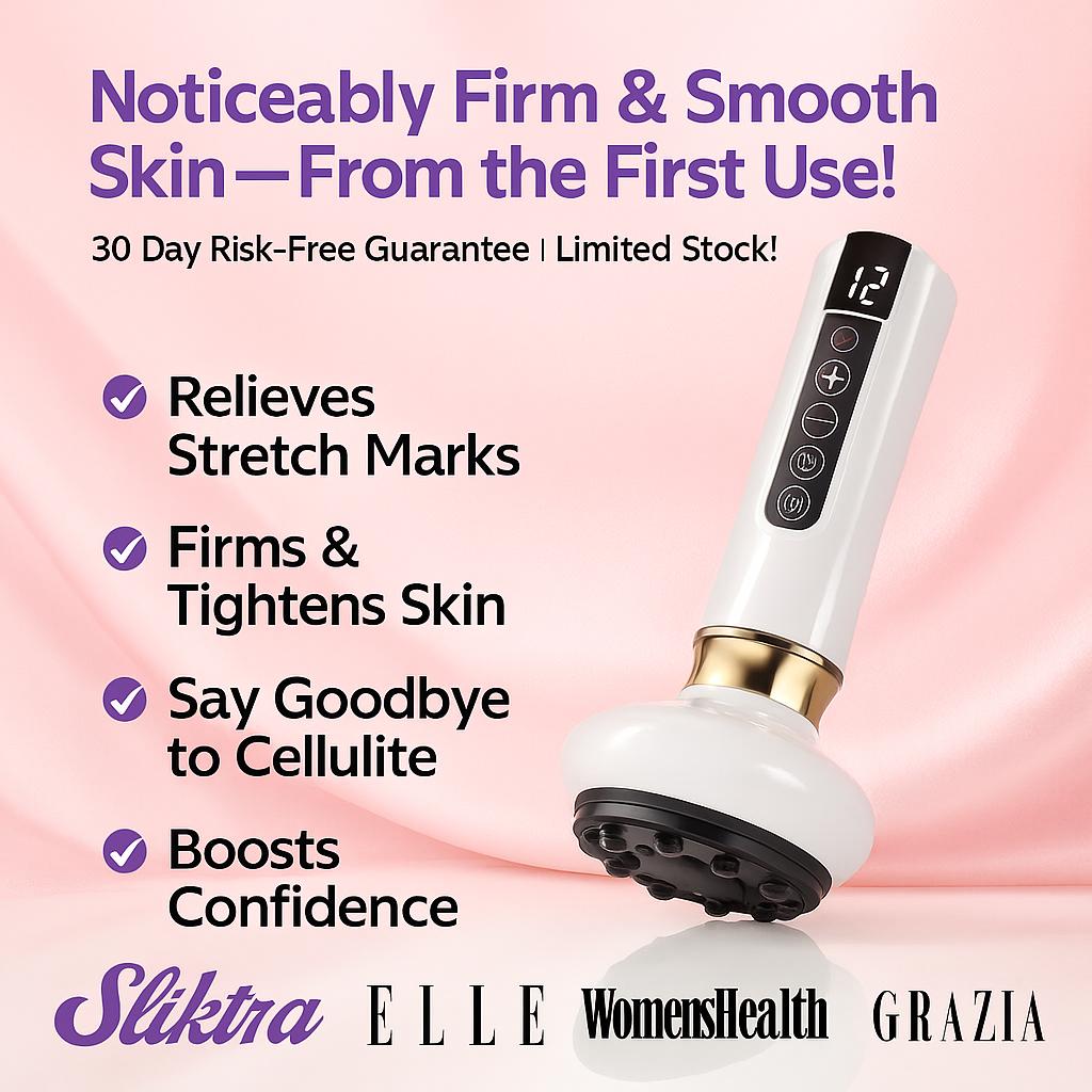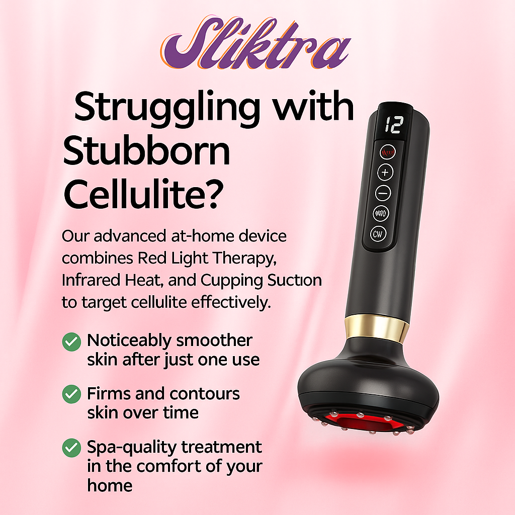 Sliktra's Advance Anti-Cellulite Massager combines professional-grade treatments into one easy-to-use portable device for at-home convenience. It utilizes a synergy of red light therapy, infrared heat, adjustable cupping suction, and scraping techniques - commonly used to reduce cellulite and improve skin elasticity. These methods work together to target stubborn cellulite, boost circulation, and rejuvenate your skin while allowing you to adjust suction levels for optimal comfort.